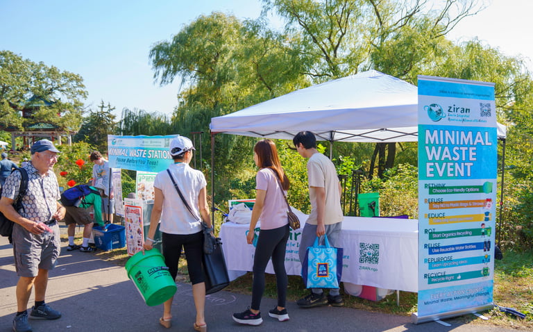 For ZIRAN’s co-founders, these reflections came with mixed emotions. They were deeply grateful for their volunteers’ tireless efforts, yet it was hard to overlook the trash bins outside the festival grounds, which were not part of the Minimal Waste stations. During the final cleanup, a park service vehicle drove past, carrying several large bags of unsorted waste that had not been properly separated into compost, recycling, and landfill. In stark contrast to the neatly sorted bags from ZIRAN’s Minimal Waste station, all the other trash, unfortunately, would end up in the landfill.