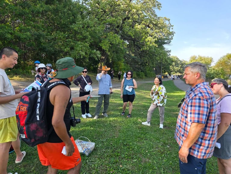 This session focused on the connections between Lake Phalen and the Mississippi River, using storytelling to explore how water carries histories and memories. Drawing on the theory of water and its myths, Peng, a Land and Water Scholar, reminded us that water is a symbol of connection, transformation, and belonging. Through our stories, we reflected on how water shapes both communities and identities in continual motion.