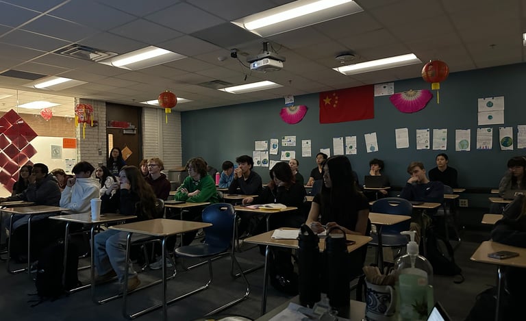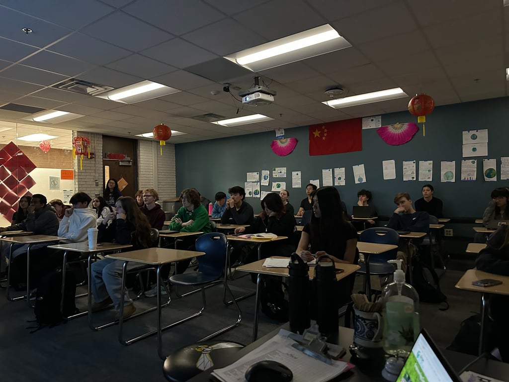 After class, Teacher Bai arrived with her AP class students for the next session. Jing and Grace were honored to receive an invitation from Teacher Bai to return and present to two of her higher-level classes.