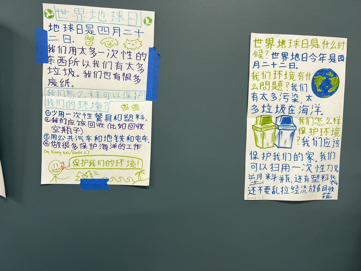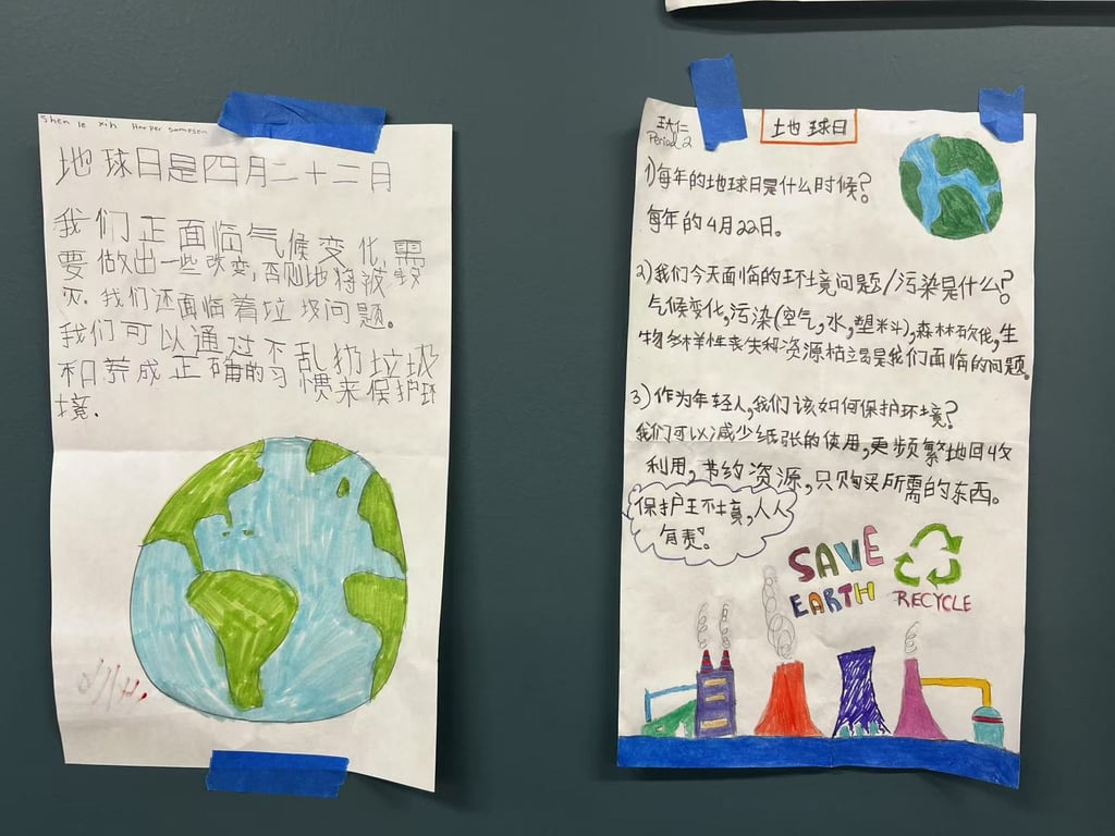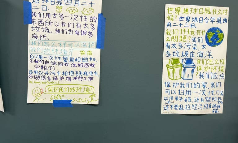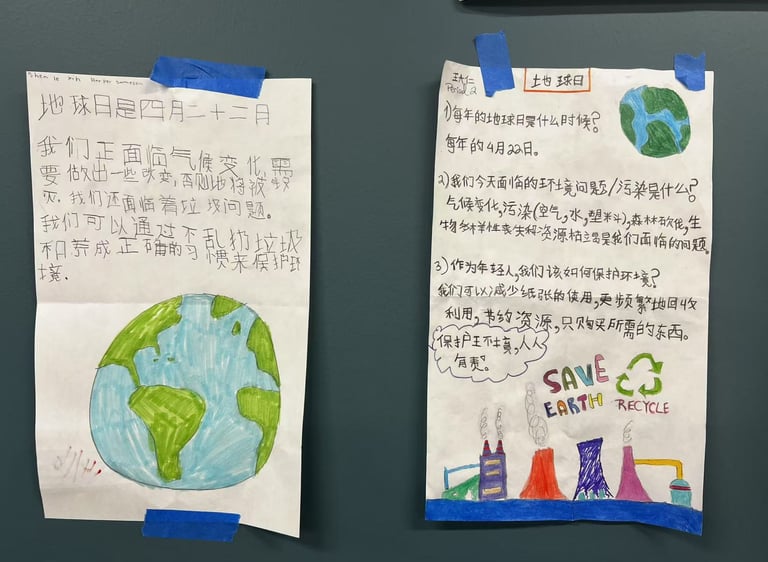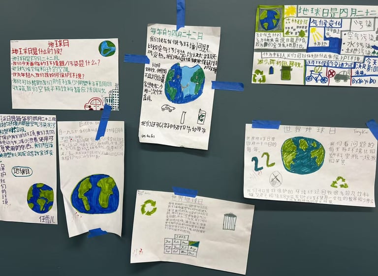 To celebrate Earth Day, Teacher Wang Zhuo guided her students to create posters as part of a classroom project on conservation and sustainability. The posters reflected students’ thoughtful understanding of environmental issues and their creativity in encouraging action.