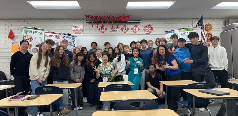 On April 25, 2025, ZIRAN’s environmental education tour made its next stop at Edina High School, where co-founders Jing and Grace delivered another engaging session—this time to 28 10th-grade students in the Chinese 3 class, taught by Teacher Wang Zhuo.