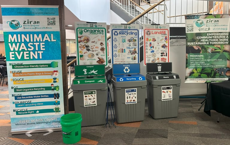 During events, we provide direct support to ensure proper recycling. We encourage everyone to "Pause and Sort" before disposing of trash.