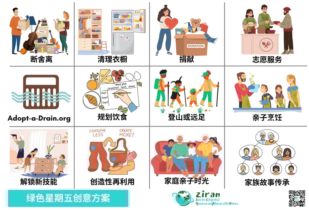 创造家庭传统: 一起烹饪家传菜、旧物改造、修复一件老物品,或开设一项属于家庭的“小小绿色计划”。让每年的“绿色星期五”,都成为有故事、有温度的回忆。