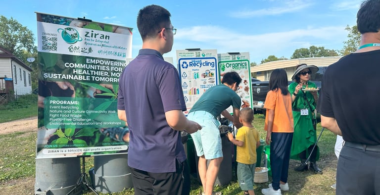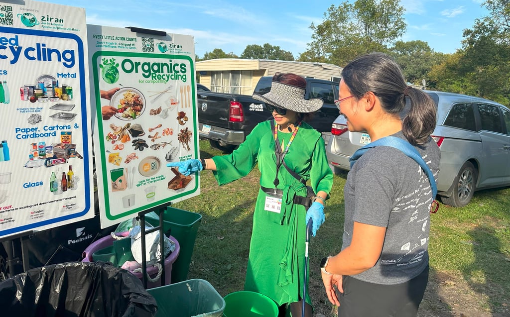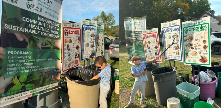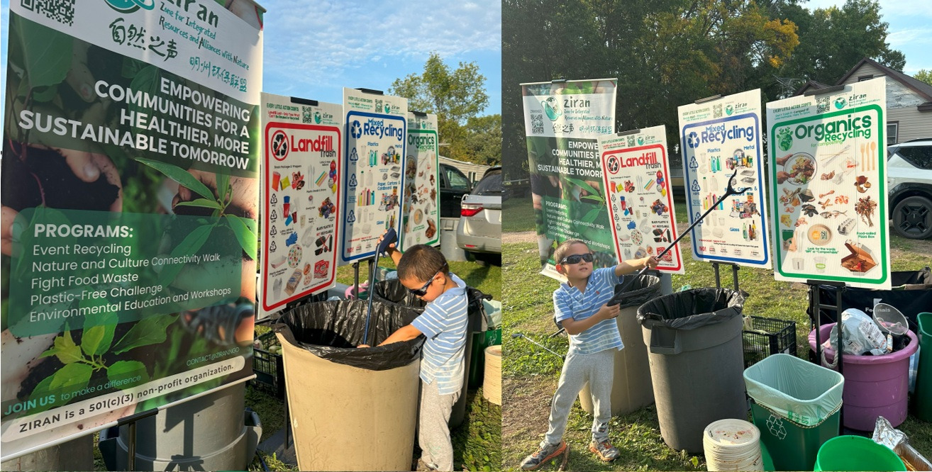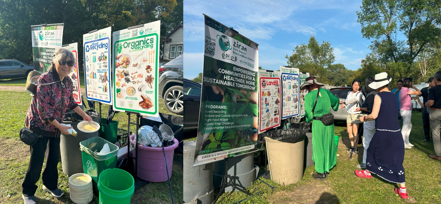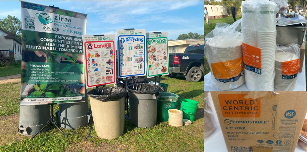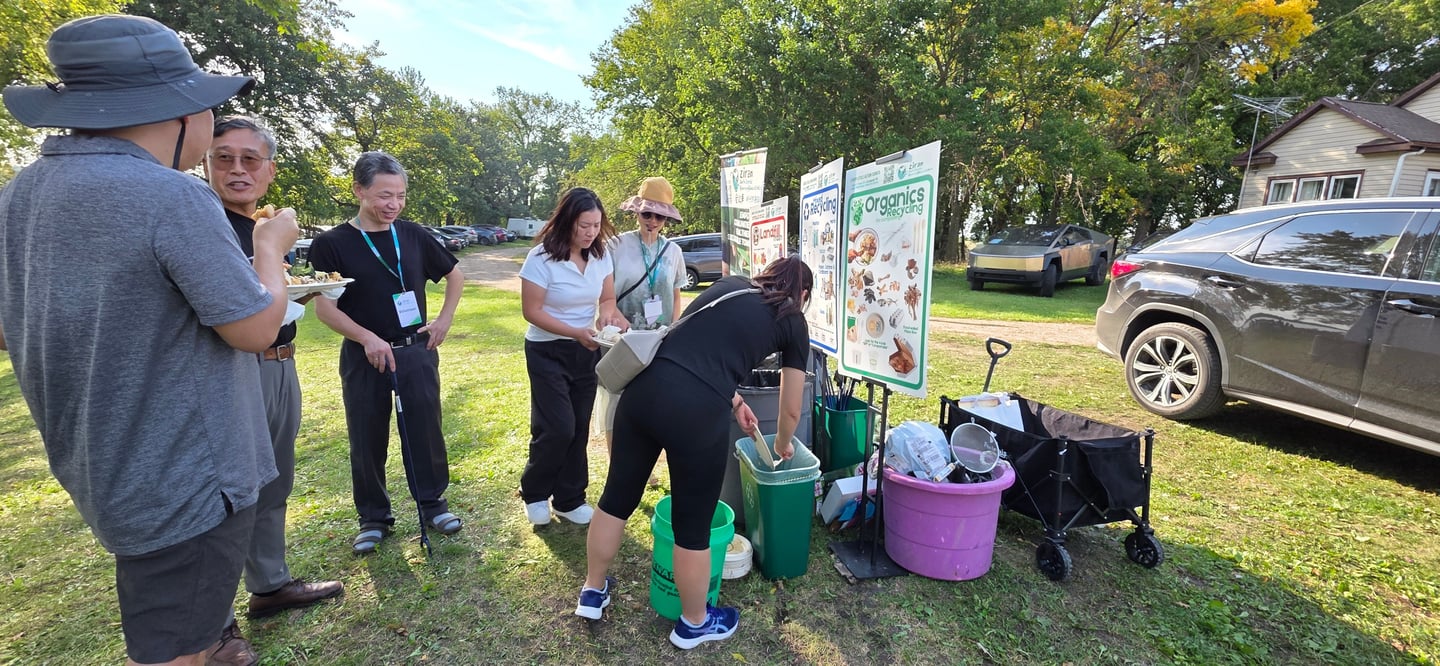 One such helper was Richard, a leader from the West Metro Chinese Church (WMCC). He picked up a trash grabber to help pull trash out of the recycling and compost. ZIRAN met Richard roughly one year ago at a dinner party at WMCC, where they guided the waste sorting.