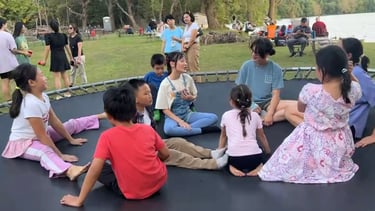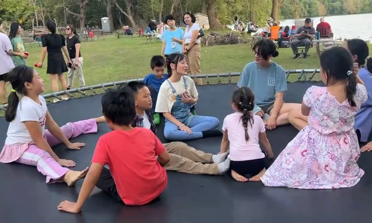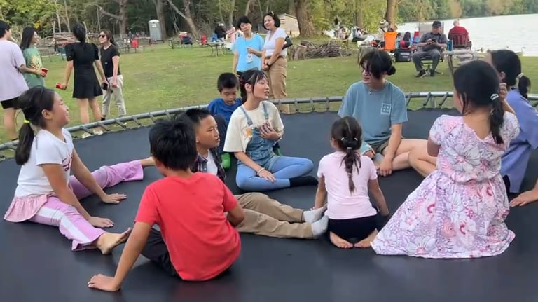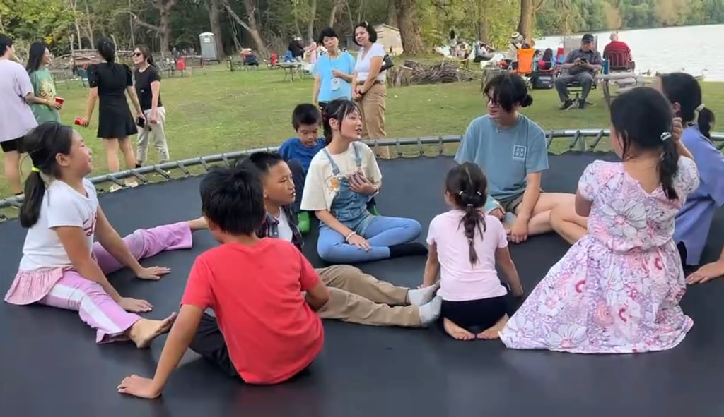 Mr. Xu temporarily enclosed the free-range animals to provide a safer environment for guests, especially the children, to interact with them. He even set up many fun activities, like a trampoline. Surrounded by trees and open lake views, parents could eat and converse while they watched their children laugh and play.