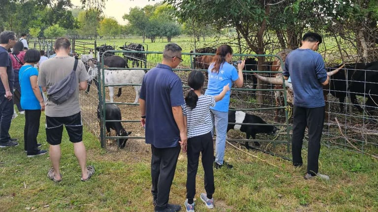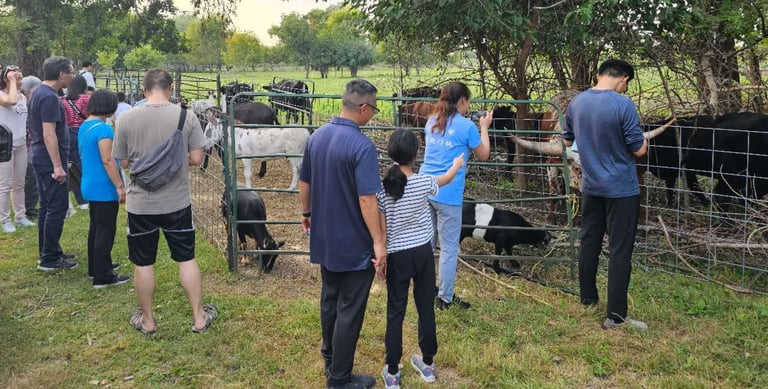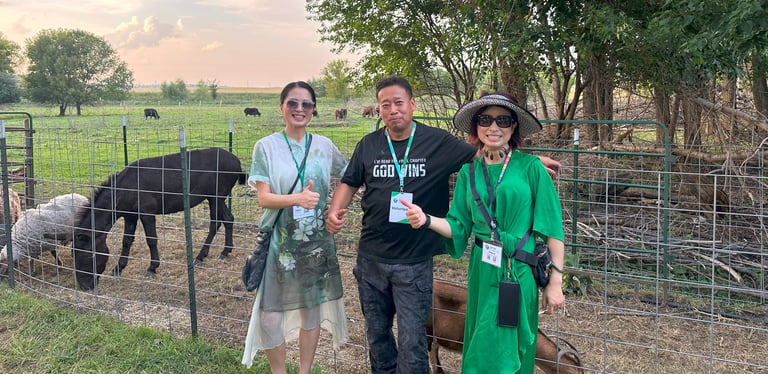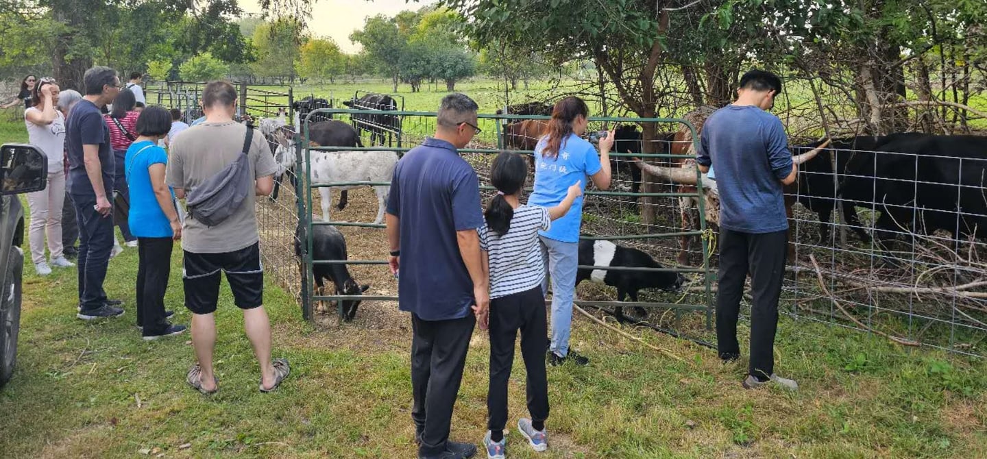 Today, thanks to Mr. Xu’s hard work, the farm is home to more than 500 fruit trees and berry bushes. It raises seven breeds of cattle. Over half are Wagyu; the rest are Texas Longhorns, Belted Galloway, Dexter cattle, Highland cattle, Jersey cattle, and yak. There are eight breeds of sheep, Hungarian Mangalitsa pigs, miniature donkeys, ponies, and birds like emus, peacocks, chickens, ducks, and geese.
