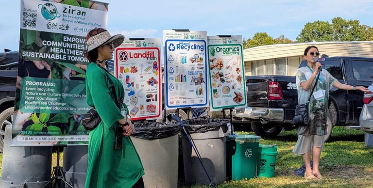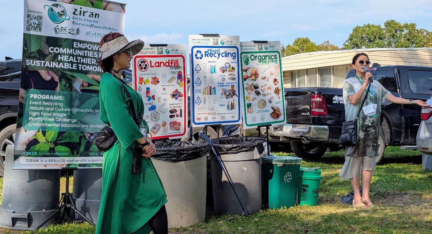 As lunch started, Jing Li introduced ZIRAN’s missions and the importance of proper recycling. She highlighted the value of composting and other forms of organic waste recycling. People who take the time to recycle their organic waste can transform their scraps into nutrient-rich compost that can feed plants and gardens. Organic waste recycling is also an important step toward reducing landfill waste, as approximately 25% of household trash is composed of organic materials. Finally, composting and other organic waste recycling prevent the release of methane that happens when food decomposes in landfills. Methane is the primary component of natural gas and a potent greenhouse gas. Accordingly, reducing the amount of food waste going to landfills not only helps keep our land cleaner but also helps combat climate change.