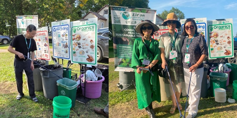 This is because when people mix too much non-recyclable waste into the recycling bin, the waste management company treats the entire bin as garbage and sends it to the landfill. ZIRAN’s co-founders ensured that proper signage was displayed to help attendees sort out as many compostable materials as possible and avoid contaminating their recycling materials.