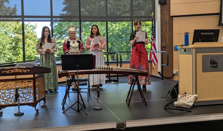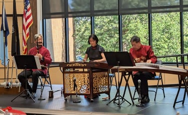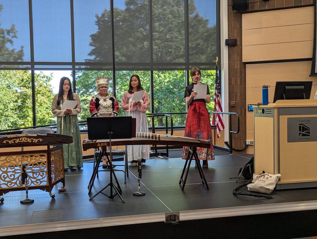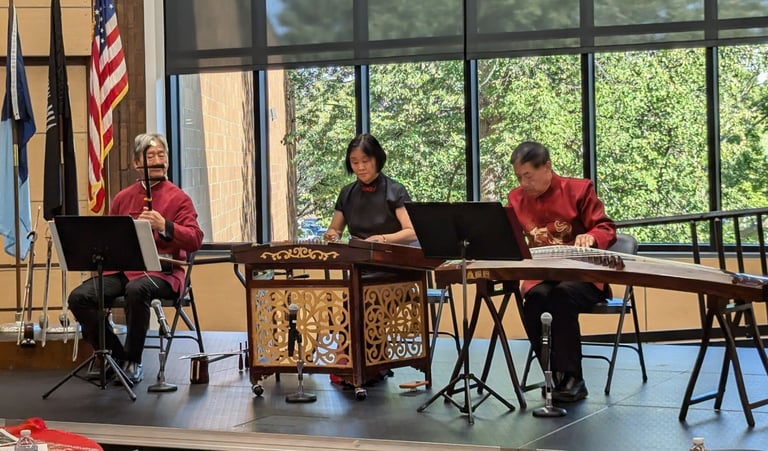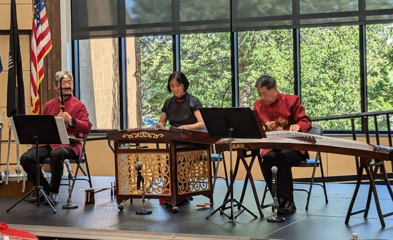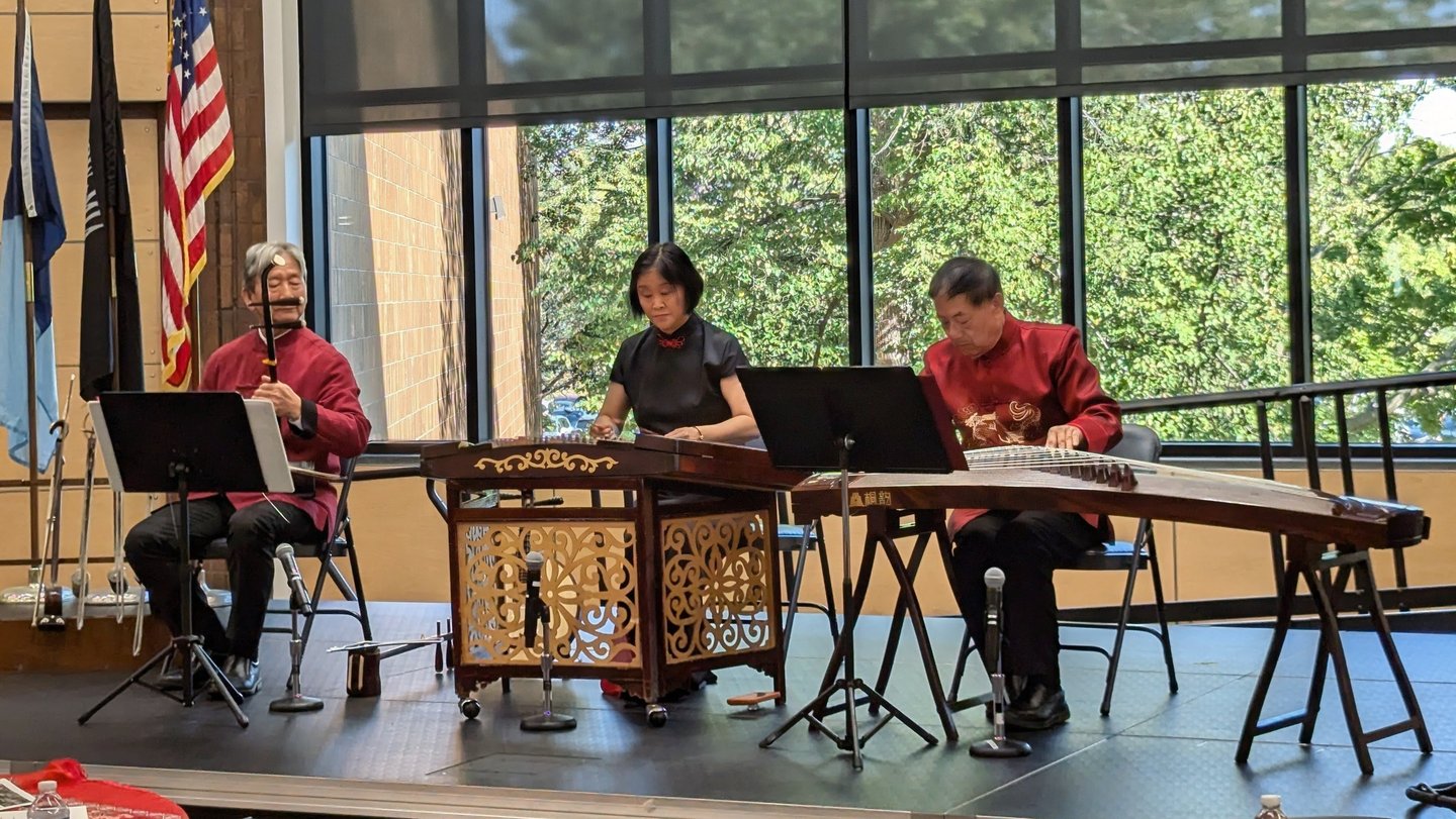 The event also featured musical performances by three traditional Chinese musicians: Mr. Jiaxiang Li and husband-and-wife duo Mr. Zhenggang Xie and Ms. Mei Hu. Their performances captivated the audience with elegance and dramatic flair. Century College alumna Julie Ann McDonald shared that “the music is both elegant and dramatic,” perfectly summarizing the atmosphere of the concert.