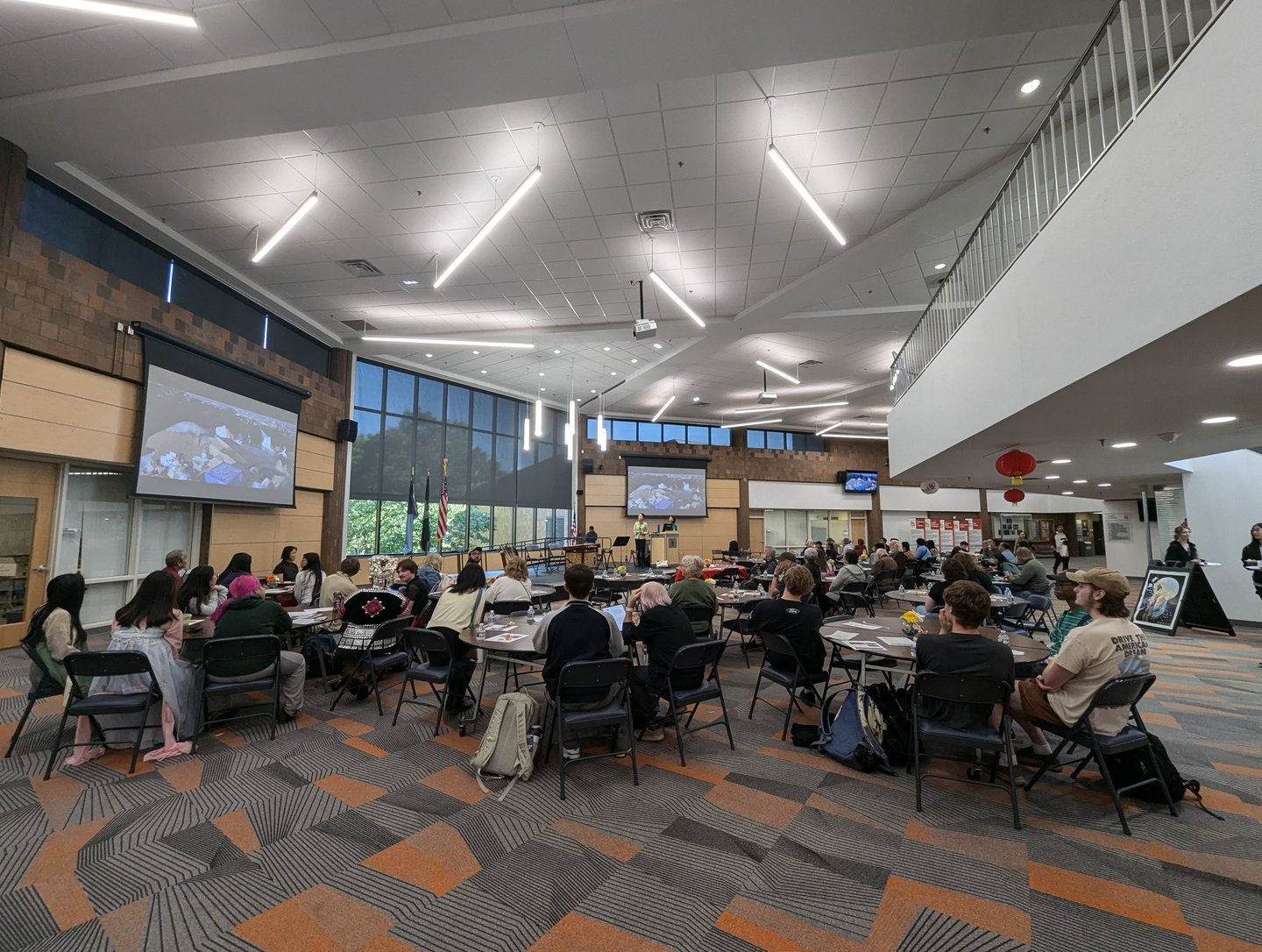 When the speech concluded, attendees enjoyed a traditional Chinese lunch featuring kung pao chicken, orange chicken, vegetables, rice, and the festival specialty, mooncakes, symbolizing reunion and gratitude during the Autumn Equinox.