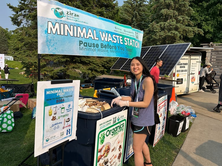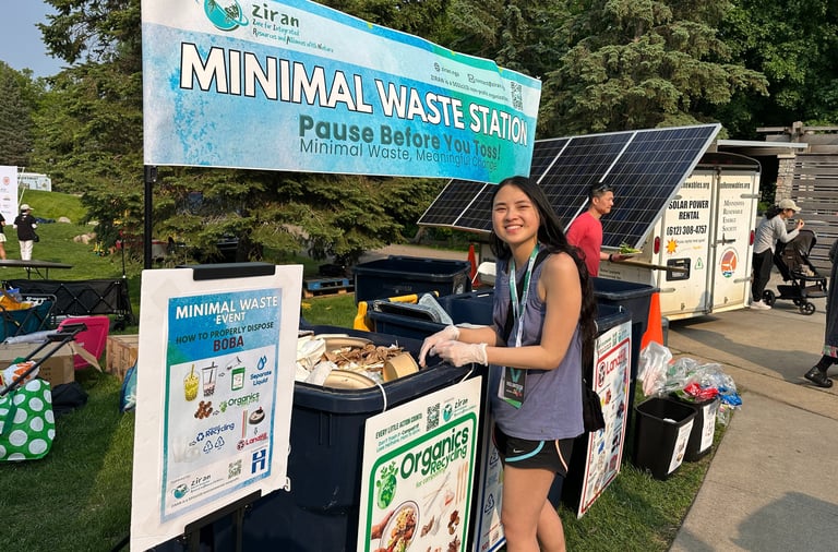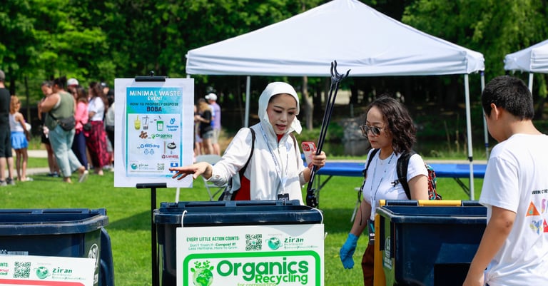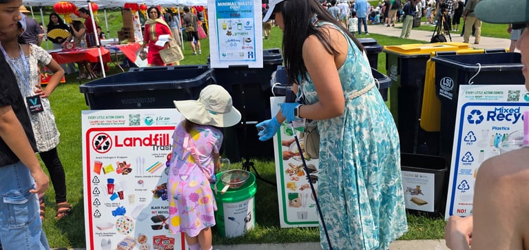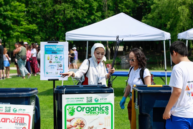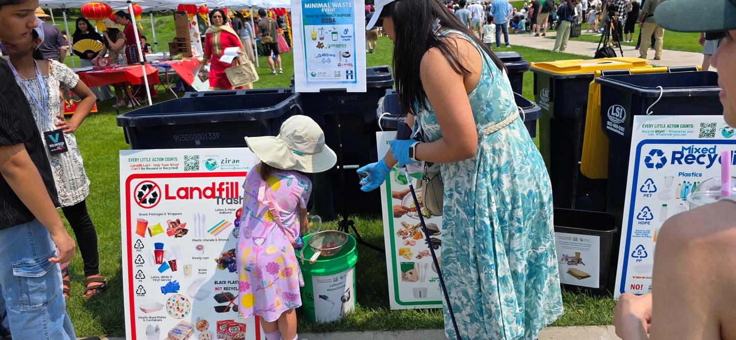 ZIRAN’s Minimal Waste Stations also introduced new, step-by-step signage for boba tea disposal. ZIRAN’s co-founders had identified the proper disposal of boba tea containers as a recurring challenge during the January Lunar New Year Celebration at Asia Mall. This event’s innovative new signage allowed volunteers to quickly guide visitors and reduce sorting errors.