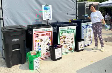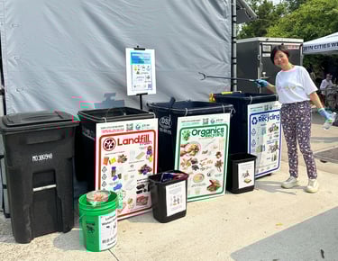 We also introduced new, step-by-step signage for boba tea disposal, a recurring challenge identified during the January Lunar New Year Celebration at Asia Mall. This innovation allowed volunteers to quickly guide visitors and reduce sorting errors.