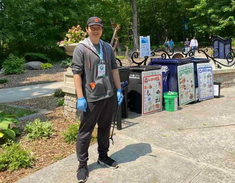 At the fair, ZIRAN set up five large Minimal Waste Stations across the fairgrounds. These stations feature separate bins for compostable Organics, Recycling, and Landfill, plus two specialty bins for plastic bags and paper. It is important to collect paper separately to avoid contaminating it with food and drink, keeping it truly recyclable. Meanwhile, signs help attendees identify which bins to use for their waste, and volunteers stand by, ready to answer any questions.